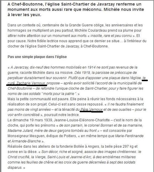 guerre - Paroisse Saint Chartier de Javarzay. Auteur(s) du