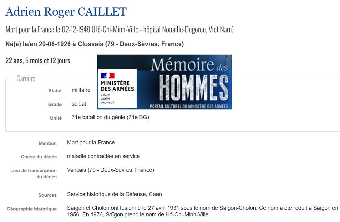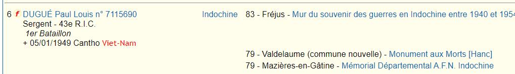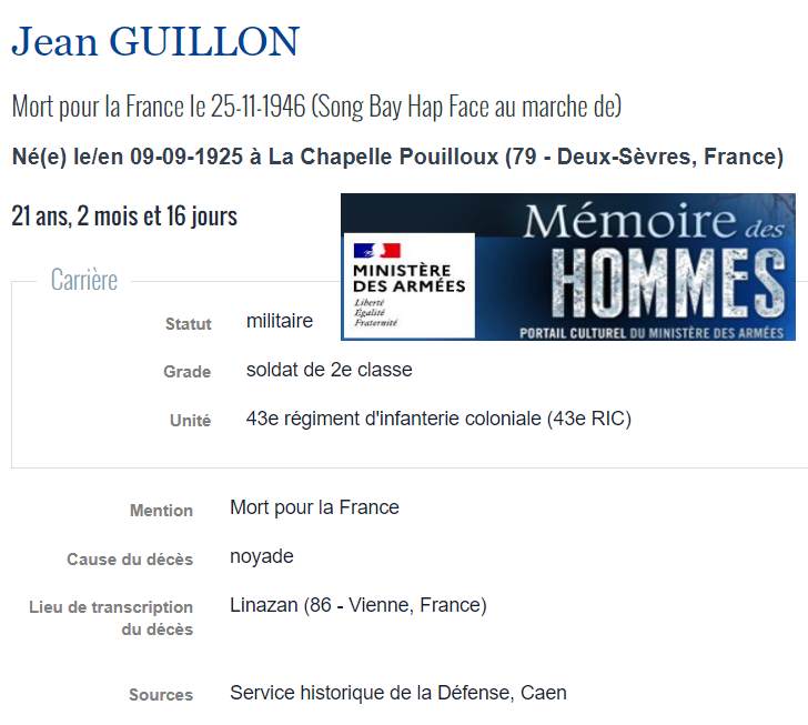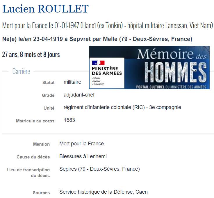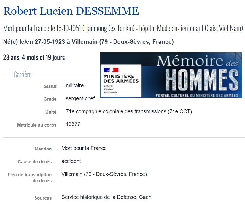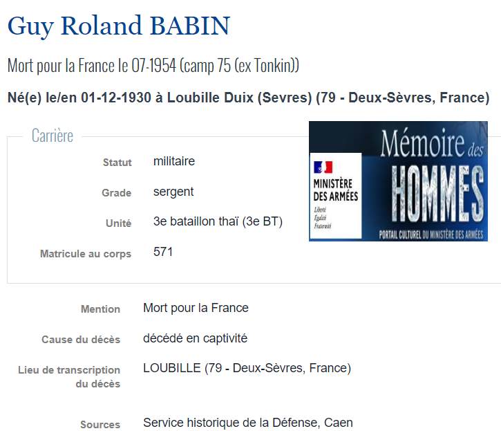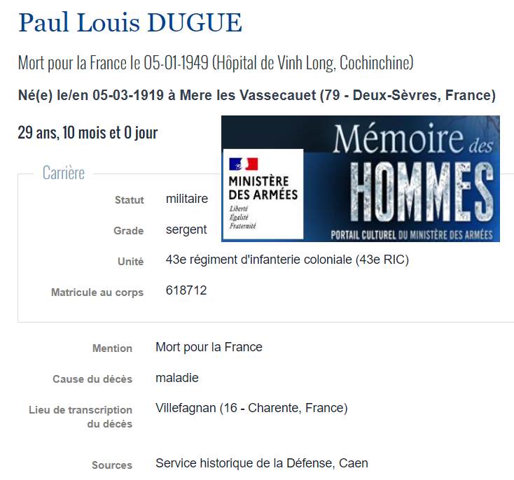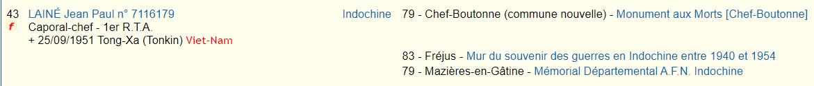 Soldats originaires du Mellois, Morts pour la France en INDOCHINE (1945/1954) |