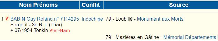 BABIN Guy Roland né le 01-12-1930 LOUBILLE 79 - DEUX-SEVRES |