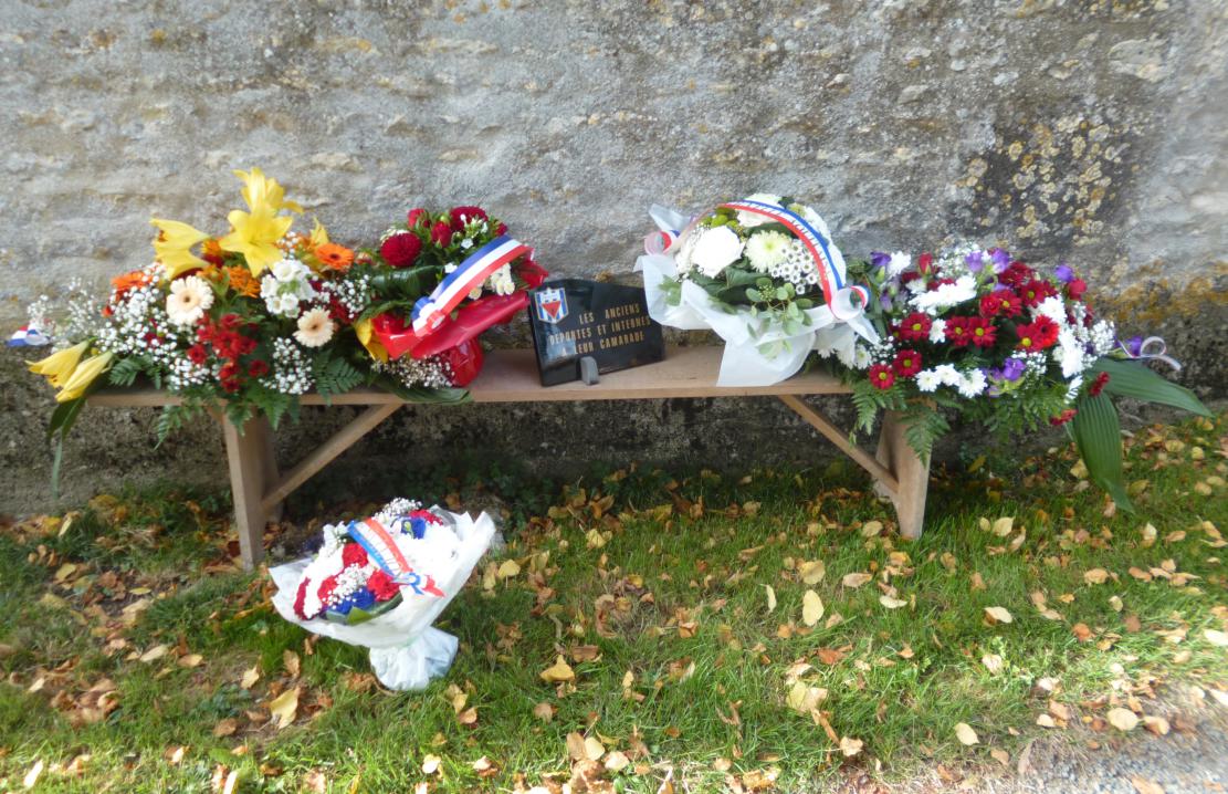 Plaque et fleurs qui seront déposées au pied de la plaque |