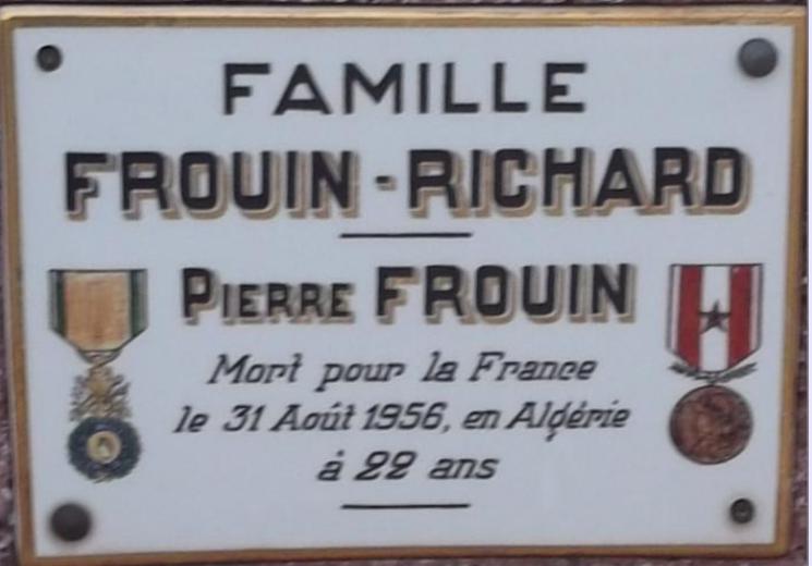 . Nom FROUIN . Prénoms PIERRE . Date de naissance 09-08-1934 . Décès 31-08-1956 . Pays décès ALGERIE |