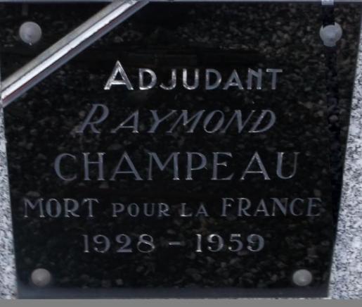 . Nom CHAMPEAU . Prénoms RAYMOND HENRI . Date de naissance 19-12-1928 . Décès 27-08-1959 . Pays décès ALGERIE |
