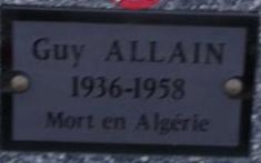 . Nom ALLAIN . Prénoms GUY . Date de naissance 09-12-1936 . Décès 27-03-1958 . Pays décès ALGERIE |