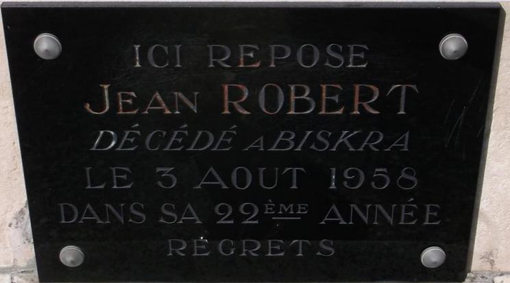 . Nom ROBERT . Prénoms JEAN JACQUES . Date de naissance 27-11-1932 . Décès 20-05-1958 . Pays décès ALGERIE |