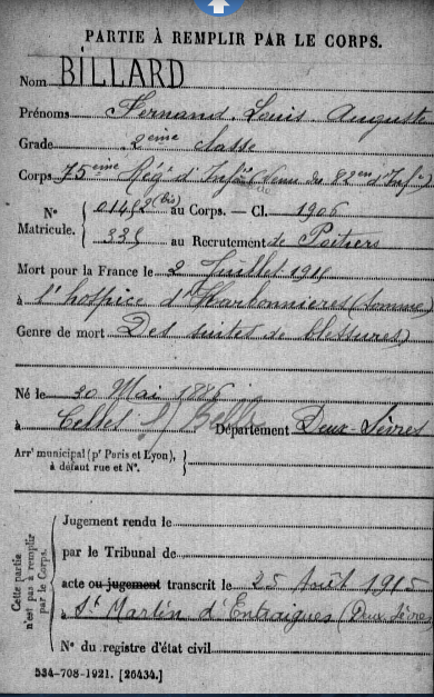BILLARD Fernand (1886/1915) – (29 ans) |