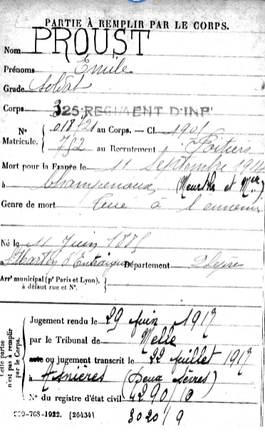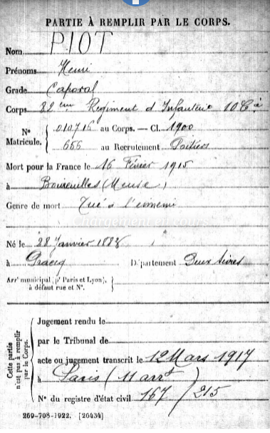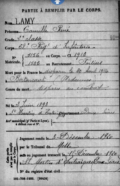 NIORT 1912 matricule 354 page 474/650 soutien de famille le 5/3/1914 incorporé le 08/10/1913 ---> tué le 12/07/1915