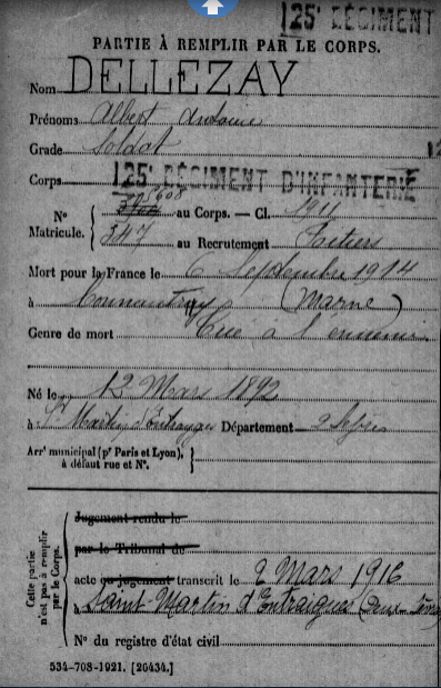 DELLEZAY Albert Antoine (1892/1914) – (22 ans) |