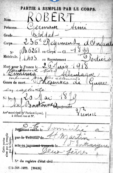 ROBERT Germain Aimé (1879/1918) – (39 ans) |