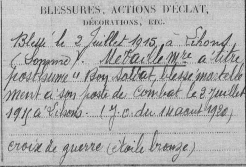 Est également inscrit sur le monument au Morts de CHEF BOUTONNE (79) |