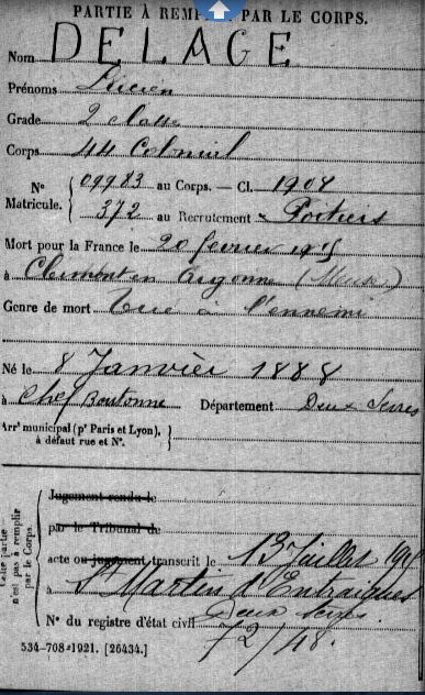 DELAGE Lucien (1888/1915) – (27 ans) |