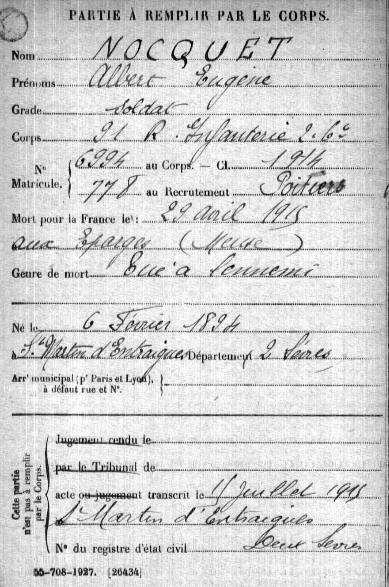 NOCQUET Albert Eugène (1894/1915) – (21 ans) |