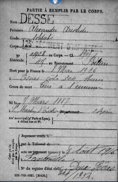 DESSE Alexandre Aristide (1887/1916) – (29 ans) |