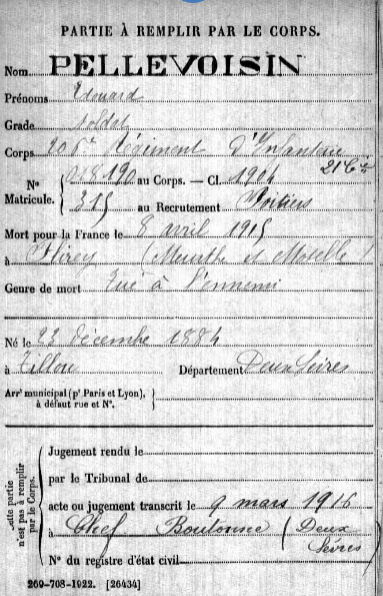 PELLEVOISIN Edouard (1884/1915) – (30 ans) |