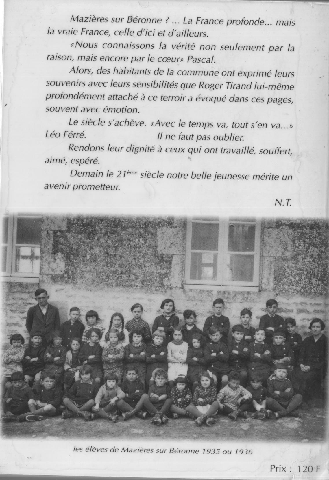 Ci dessous des morceaux de correspondances extraites du livre « Mazières sur Béronne au 20° siècle » de Roger TIRAND. Ce livre recueille les témoignages des habitants de MAZIERES SUR BERONNE. |