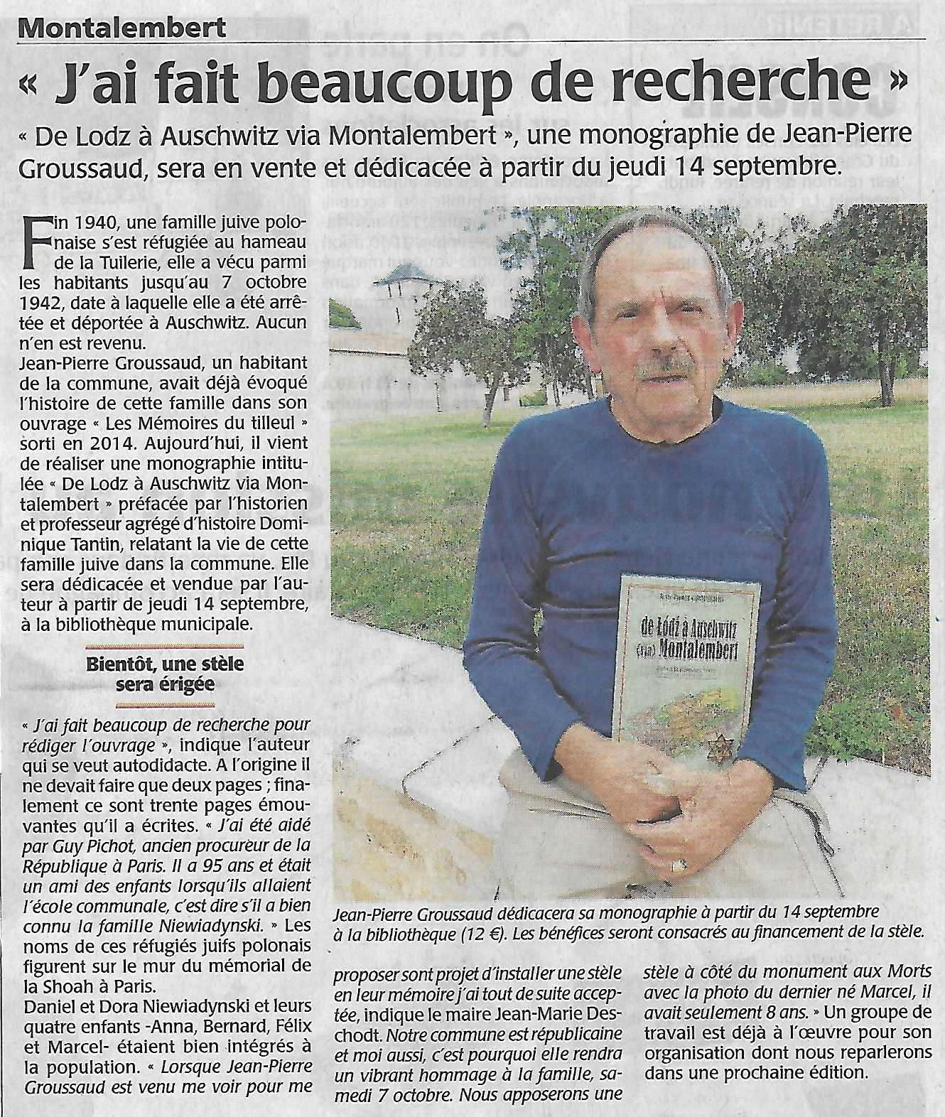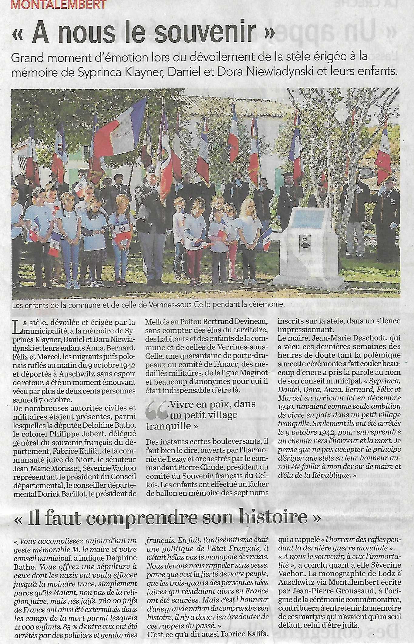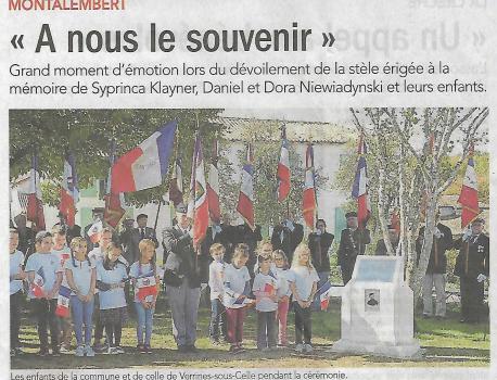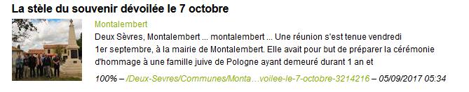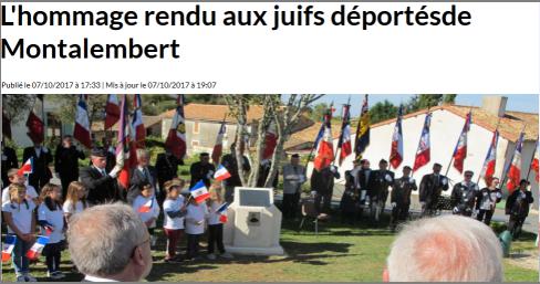 Cérémonie prévue à MONTALEMBERT (79) , le samedi 07 Octobre 2017