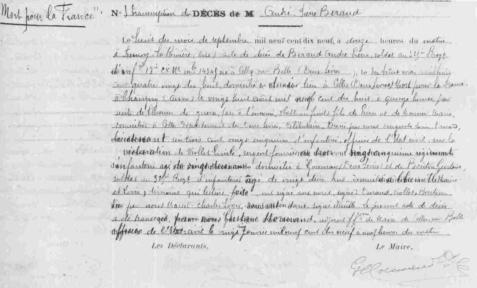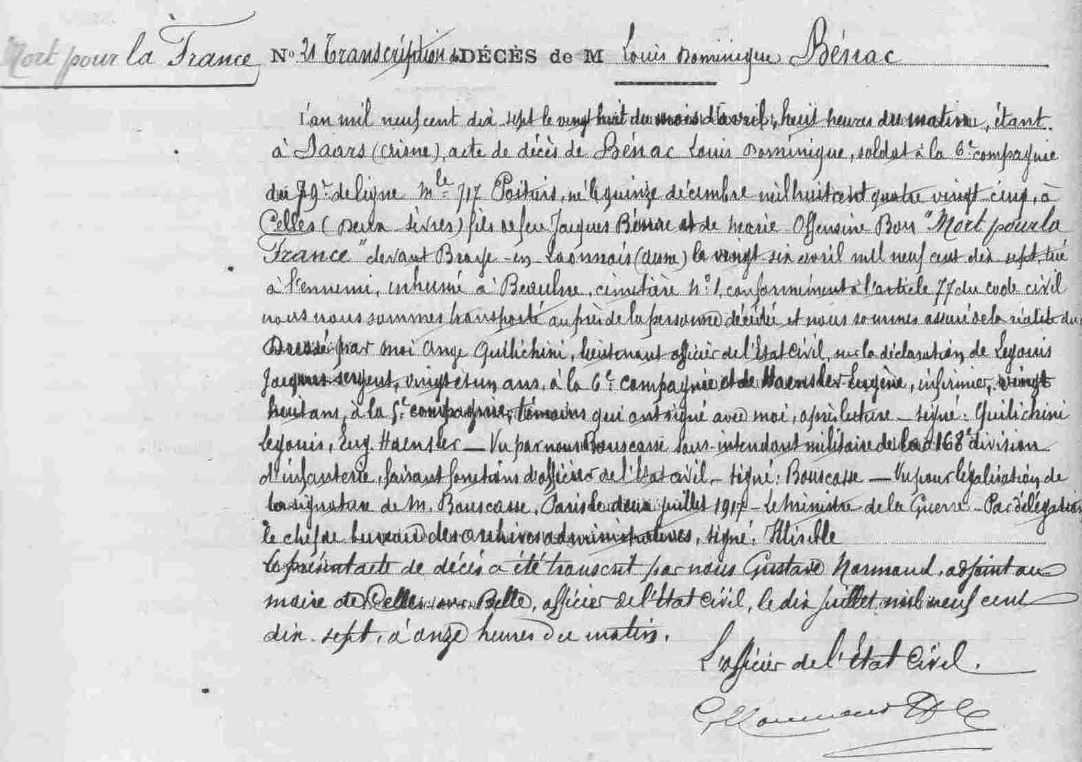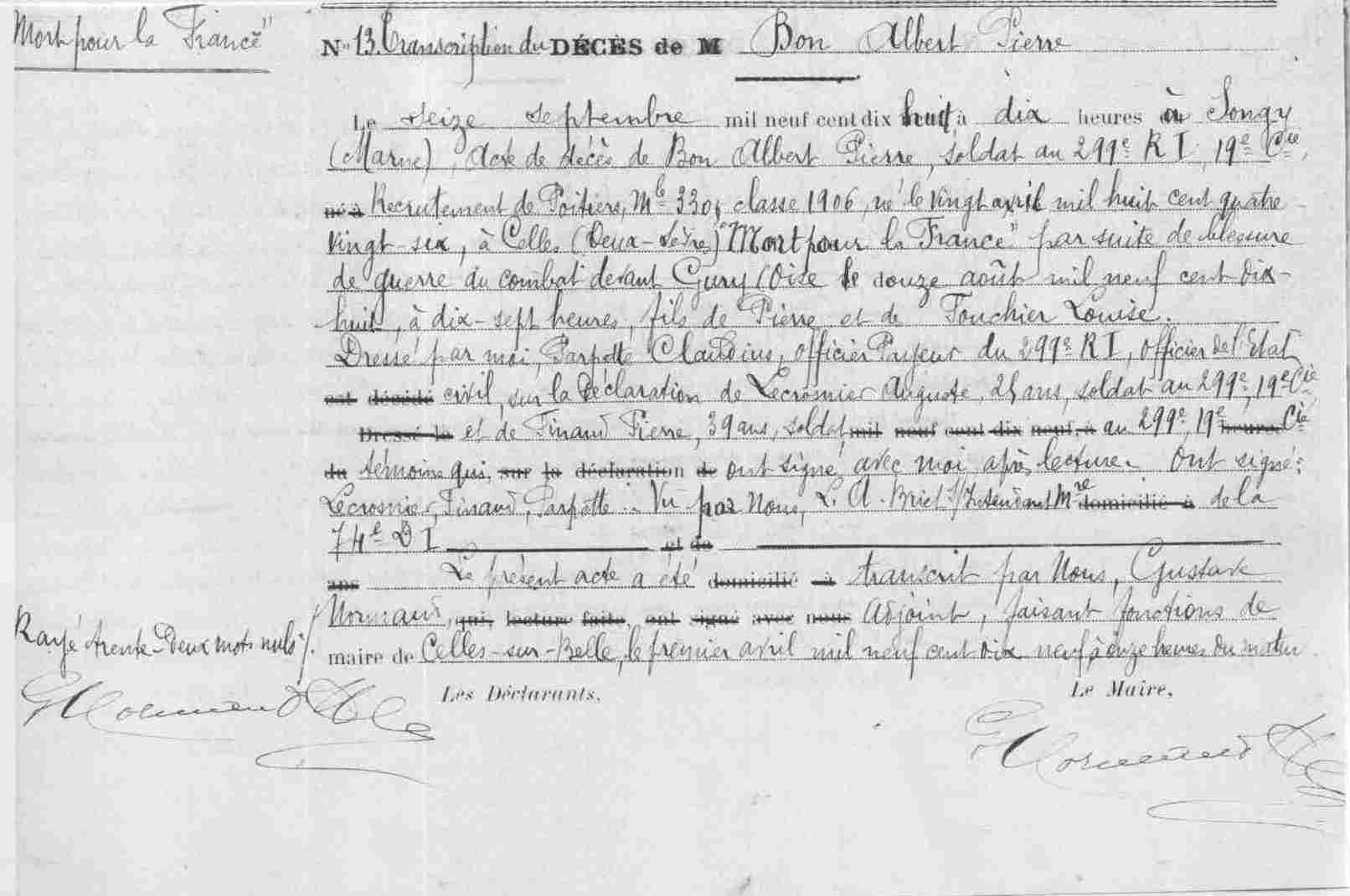 Les POILUS de CELLES SUR BELLE , MORTS POUR LA FRANCE |