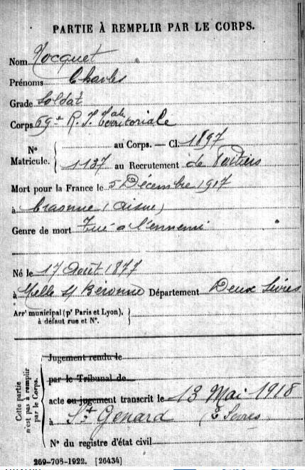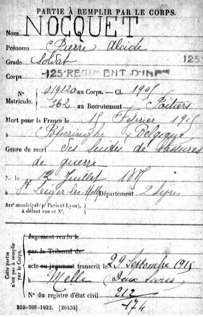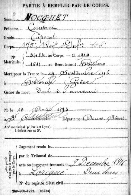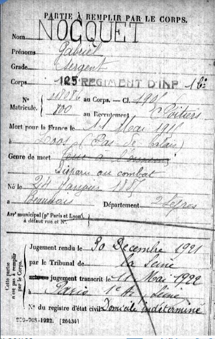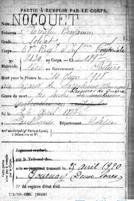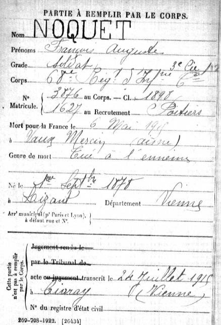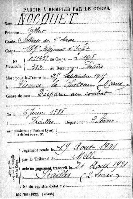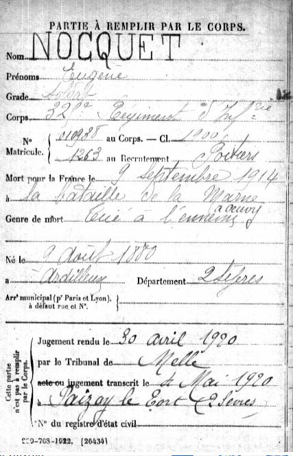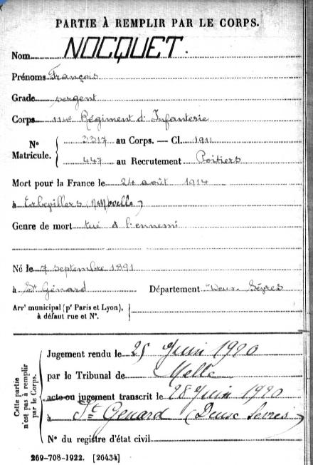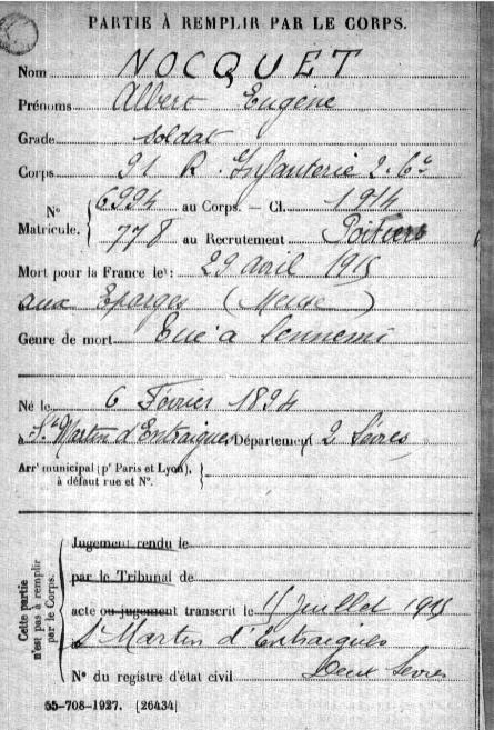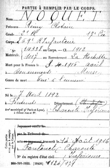 Les Soldats NOCQUET, du Poitou-Charentes Morts pendant la Guerre 14/18 |