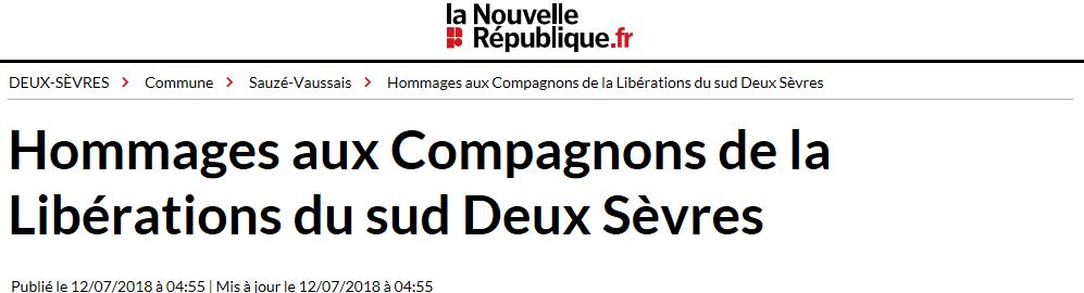 Un hommage particulier a été rendu, à Sauzé-Vaussais, au lieutenant Abel Billy, Compagnon de la Libération, mort au combat le 21 août 1944. C’est sur proposition du Souvenir Français de Celles-sur-Belle, représenté par le président, Claude Pierre, et avec la participation de l’Anacr (l’Association des anciens combattants et amis de la Résistance) de Sauzé-Vaussais, qu’un hommage aux Compagnons de la Libération du sud Deux-Sèvres a été rendu. Une cérémonie qui a débuté devant le monument aux morts, avec un rappel de la vie du lieutenant Abel Billy, lu par le général Patrick du Réau. « Né le 13 octobre 1909 à Saint-Porchaire, son père, sous-lieutenant et mutilé en 1914-1918, en était secrétaire de mairie. Trésorier général à Brazzaville, il est enrôlé volontaire en 1939. Ayant entendu l’Appel du 18 juin, et refusant l’armistice, il concourt à aider le ralliement du Congo à la France Libre le 28 août 1940 et, le même jour, il rallie les Forces françaises libres. Commencent alors pour lui quatre années de combats sur plusieurs fronts. C’est lors du débarquement en Provence, après avoir participé au débarquement en Italie en avril 1944, qu’il sera tué le 21 août 1944 lors de l’assaut du Golf Hôtel à Hyères (transformé en blockhaus par les Allemands). Chevalier de la Légion d’honneur, Compagnon de la Libération, Croix de Guerre 1939-1945, médaille coloniale, il repose à présent au cimetière de Sauzé. » Après avoir été accueillie à la mairie, la délégation s’est rendue au cimetière pour y déposer une gerbe sur la tombe du lieutenant Abel Billy. |