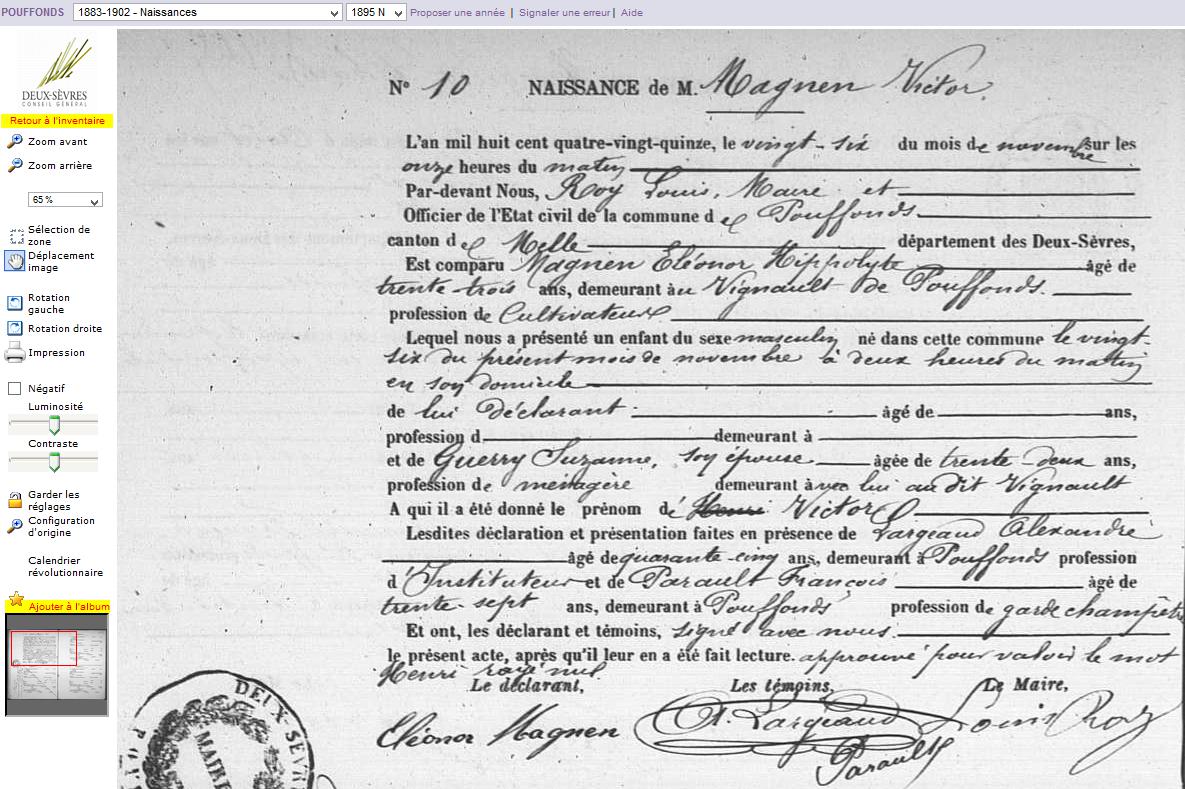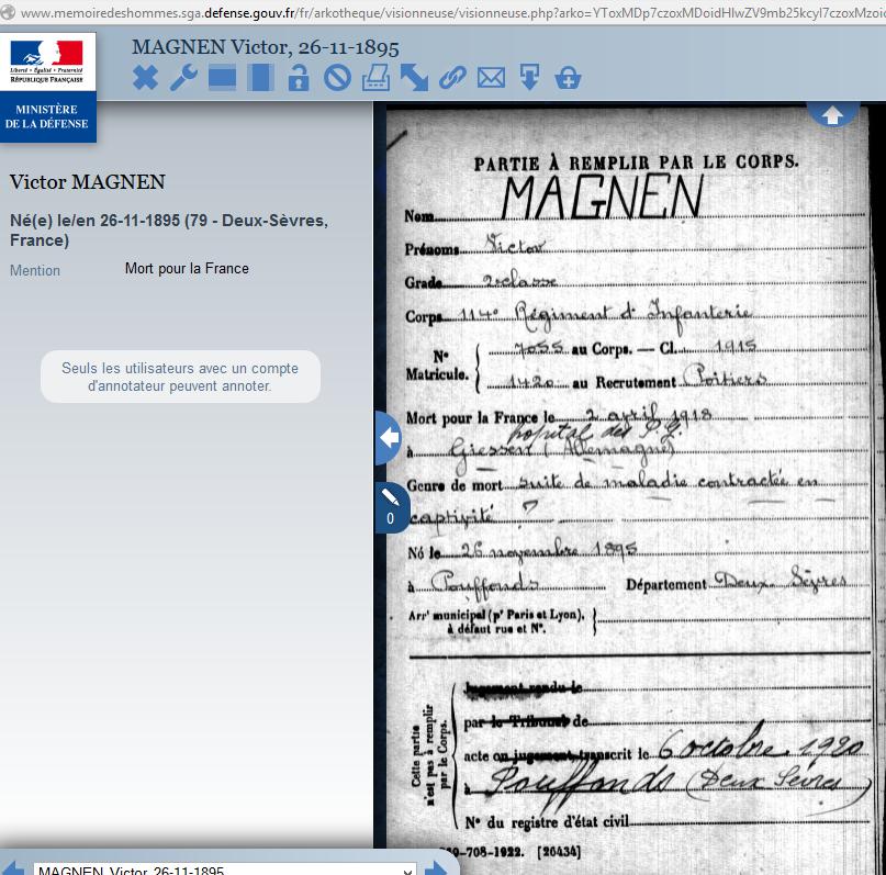 MAGNIEN Victor est inscrit sur les monuments aux Morts de SAINT GENARD et de POUFFONDS mais qui est MAGNEN Victor ? |