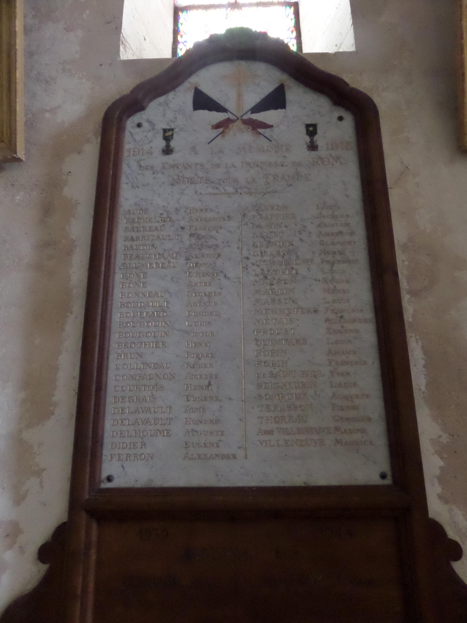 Plaque commémorative dans l'église