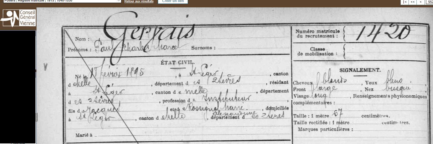 Sous lieutenant Paul GERVAIS (1895/1918) |