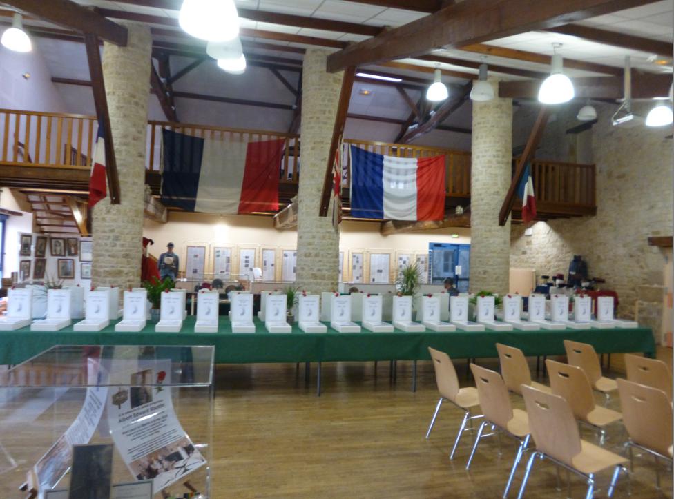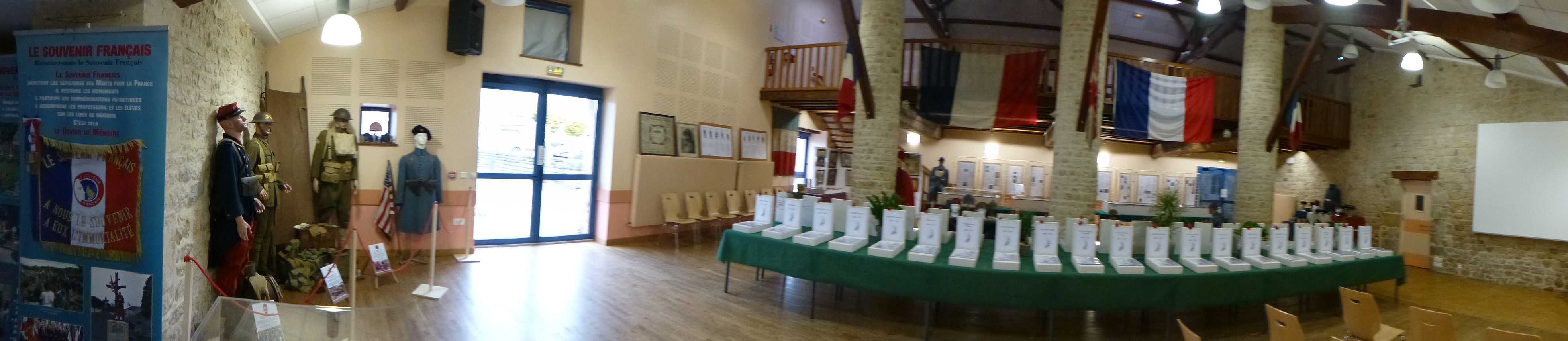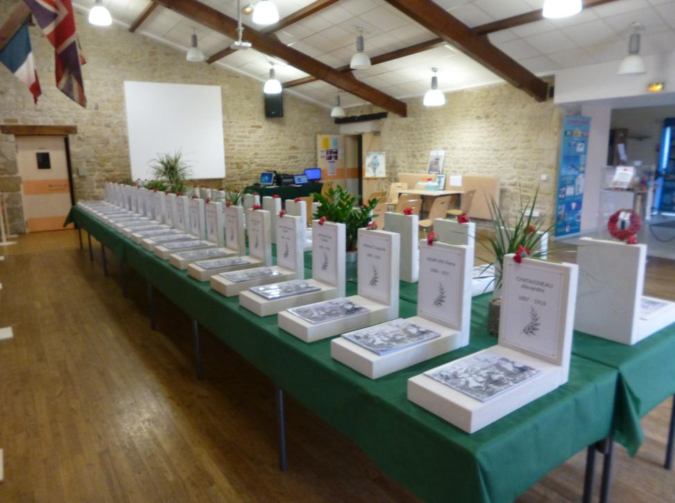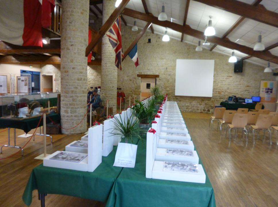 Dans la 1ère partie de la grande salle, une mini nécropole avec 40 stèles correspondant aux 40 soldats de ST LEGER et de LA MARTINIERE, morts pour la France