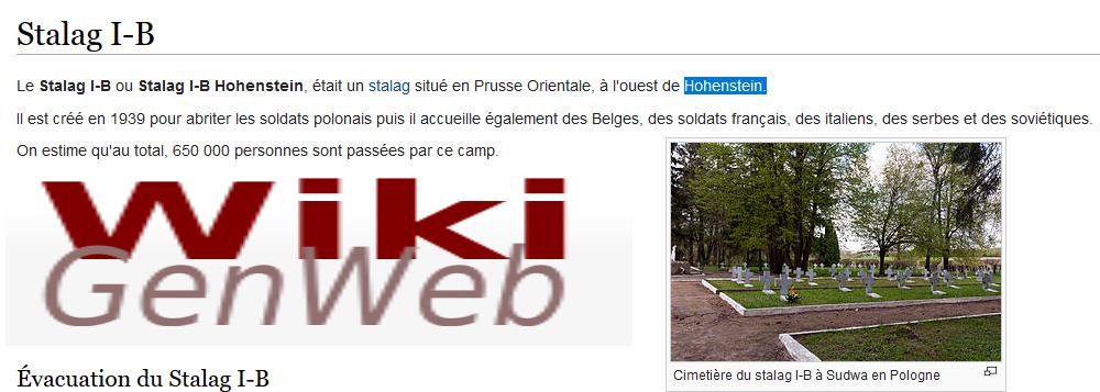 HOHENSTEIN est le stalag IB, en Prusse orientale, maintenant la ville de OLSZTYEK, en POLOGNE. |