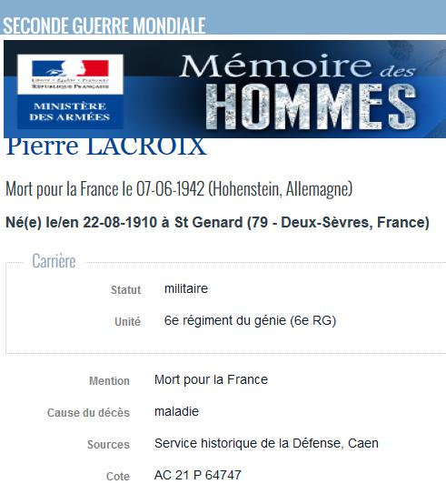 Soldat Pierre LACROIX (1910/1942) |