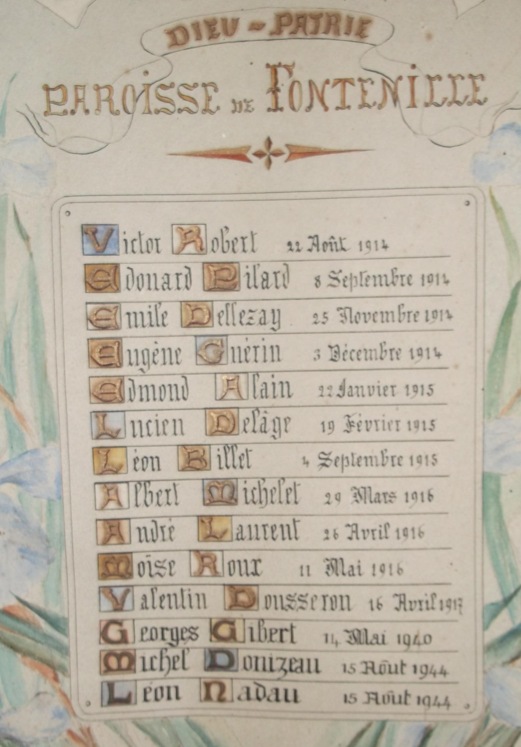 TABLEAU COMMEMORATIF à l'intérieur de l'Église