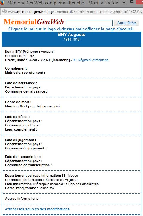 Le nom du soldat BRY Auguste a été rajouté sur le monument aux Morts le 11/11/2017 |