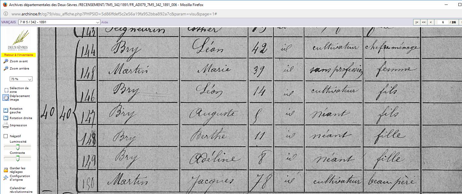 Frères et sœurs H Léon BRY 1876- F Berthe Eugénie BRY 1879- H Jules BRY 1892-
